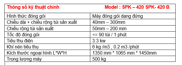 MÁY ĐÓNG GÓI DẠNG ĐỨNG 90 TÚI/PHÚT SPK-420 SPK-420B